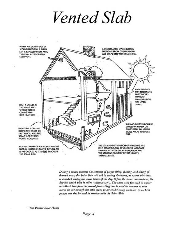 Buildings can themselves be built to be a solar collector using lots of South facing windows plus lots of heat storing materials such as concrete, tile, bricks and blocks.  For decades it has been difficult to incorporate enough heat storage into passive solar buildings, consequently they tended to overheat during the day and provide less than desirable heat at night.   However the problem of insufficient heat storage has been economically solved by the revolutionary vented slab consisting of large cement blocks underneath a concrete floor.