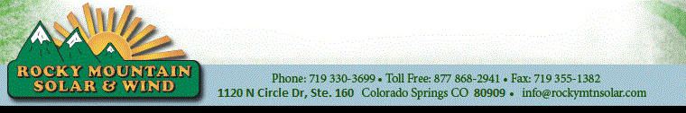 Rocky Mountain Solar and Wind installed a small 8 panel system on our roof a couple years ago. They worked well with the city utility company, answered all questions, and we're happy with our system. When there was a problem with the inverter (a manufacturer's problem, not RMSW's problem), they dealt with the manufacturer and replaced the broken part for free and swiftly. Nice local company.